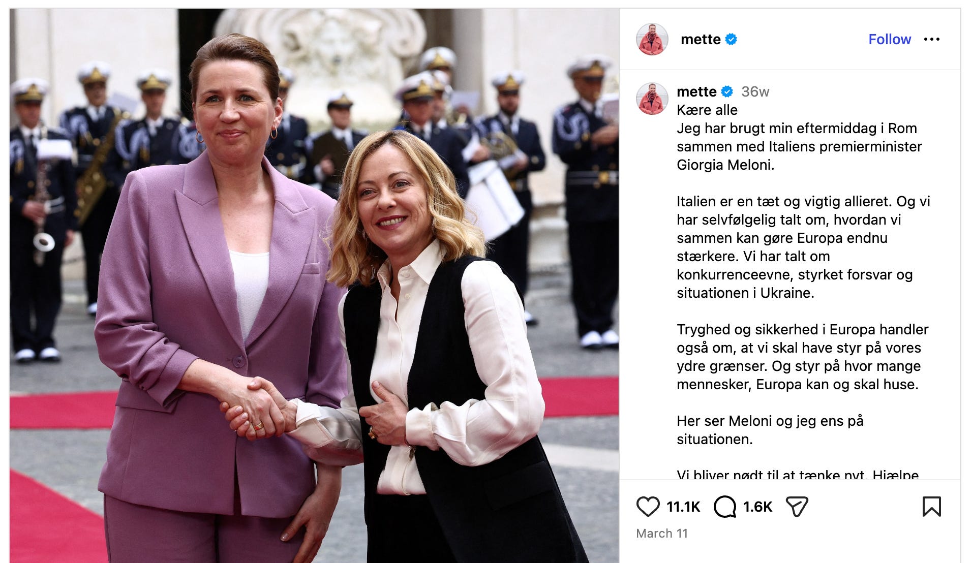 Making good on the promise, Frederiksen teamed up with Italy’s right-wing prime minister Giorgia Meloni earlier this year, explicitly challenging the European Convention on Human Rights and calling, euphemistically, for “the right balance” on immigration. It was a stunning alliance between a Nordic social-democratic leader and the head of what has been described as “Italy’s most right-wing government” since the Second World War.